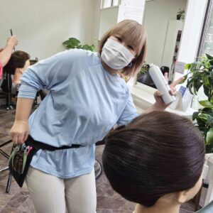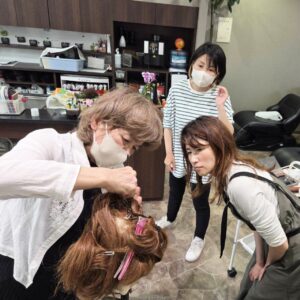 アップヘア講習(夜会巻き) 2025.05.25 夜会巻きなど、基本技術をしっかりと習得 この日のアップ講習では、基礎のひとつである「夜会巻き」を中心に練習を行いました。一見シンプルなスタイルほど、正確な技術や丁寧な仕上げが求められます。改めて基本を見直し、手の動かし方やバランスの取り方など、一つひとつの工程を丁寧に確認しました。 基本をしっかりと身につけることが、応用力やデザイン力の向上につながります。今後も基礎と応用の両面から、技術のレベルアップを続けていきます。